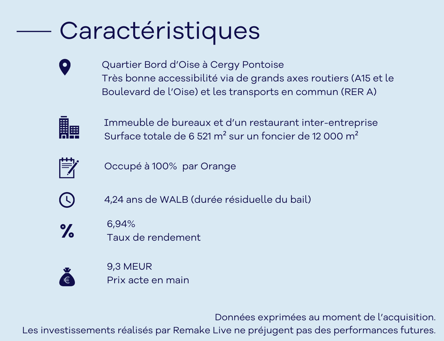 L’acquisition a été faite sur un taux de rendement acte en main de 6,94% (le montant du capital investi, le rendement et la performance ne sont pas garantis).