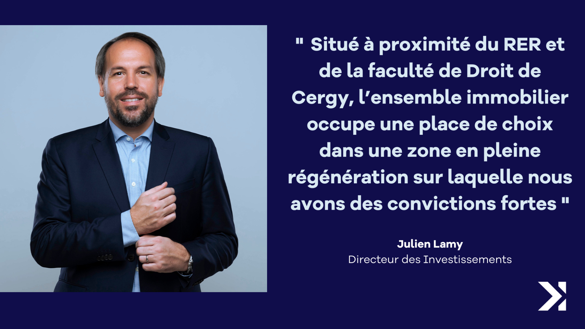 L’ensemble immobilier, à usage principal de bureaux, est situé 10/16 rue Francis Combe proche du RER Cergy Préfecture.