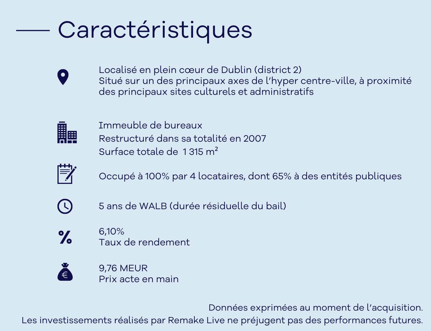 L’acquisition a été faite sur la base d’un taux de rendement acte en main proche de 6,10% (rendement non garanti, exprimé le jour de l’acquisition).